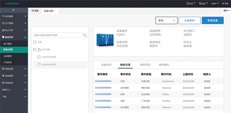 尊龙时凯设备管理系统支持设备档案的建立、、、维保基准的设置、、、维保任务的生成、、、、设备备品备件的管理、、维修任务的跟踪、、、设备监控、、、OEE分析等,,,可对设备全生命周期的管理,,极大地提高设备管理部门的工作效率。。。。实现企业设备管理科学化、、、规范化、、、、网络化的需求;通过设备采购、、设备报废、、、、设备维修、、设备保养等相关模块实现设备生命周期全面管理,,进而保证企业对设备的各种管理制度予以落实,,,提高企业的管理效率;以战略竞优、、、提高设备工作效率和维护维修效率为目的,,支持高层决策、、、中层控制、、、基层运作的集成化人机管理系统。。。