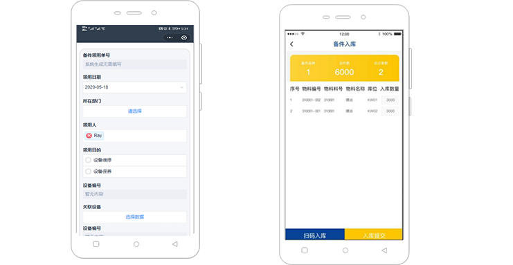 ① 库存安全预警              ② 手机/PC扫码入库              ③ 备件领用审核              ④ 制定盘点计划,,即时预警,,定期盘点